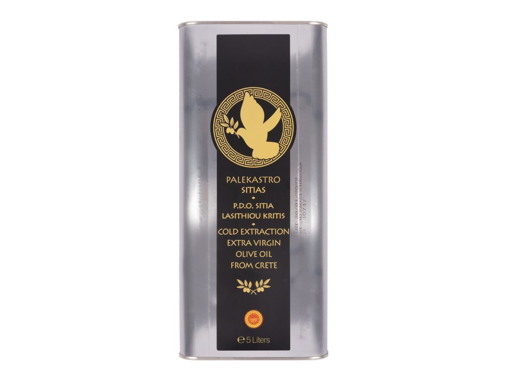 Extra panenský olivový olej PDO z oliv vypěstovaných na Krétě v oblasti Sitia (olivové háje v blízkosti vesnice Palekastro). Produkce rodiny Tsimitakis.